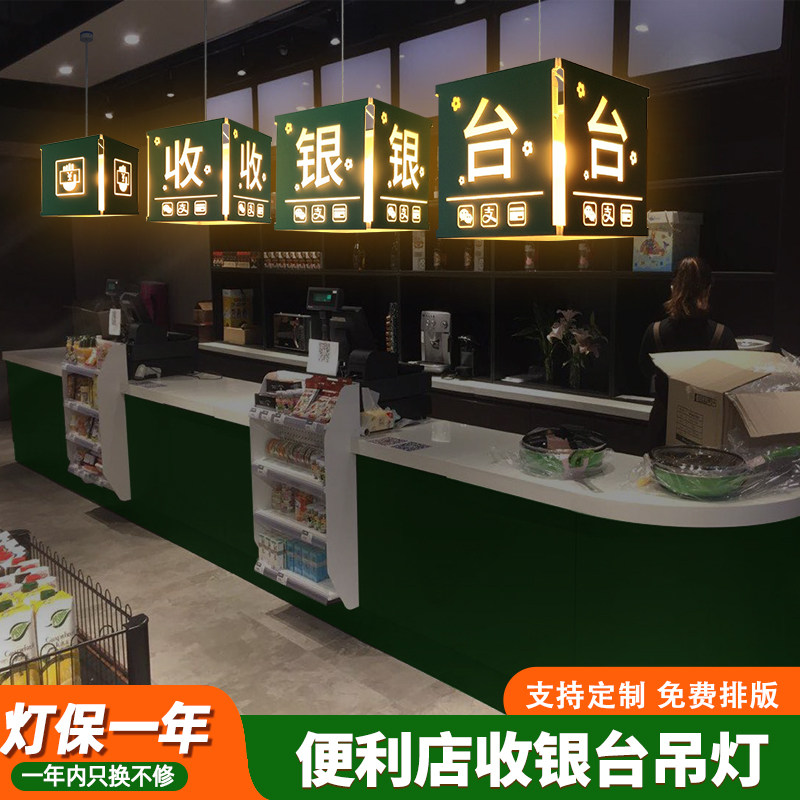 便利店超市收银前台吊灯餐饮饭馆吧台收银处标识方形氛围灯饰定制