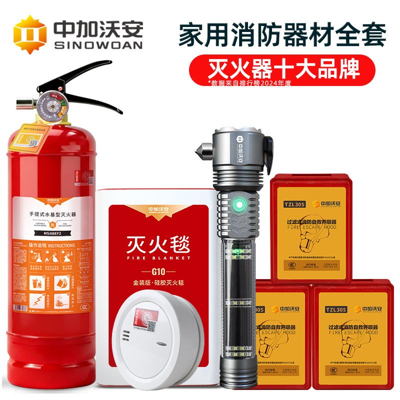 消防器材家庭套装家用四件套应急包全套灭火毯水基灭火器消防认证