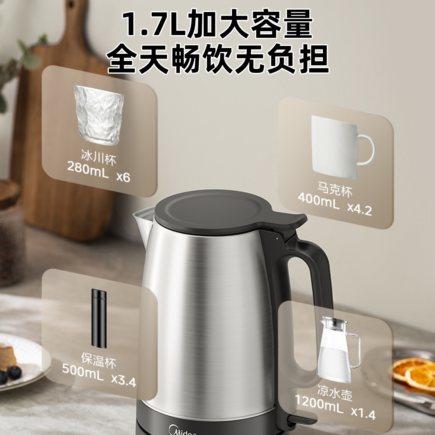 美的电热水壶家用烧水壶全自动断电办公室开水茶壶学生宿舍电水壶