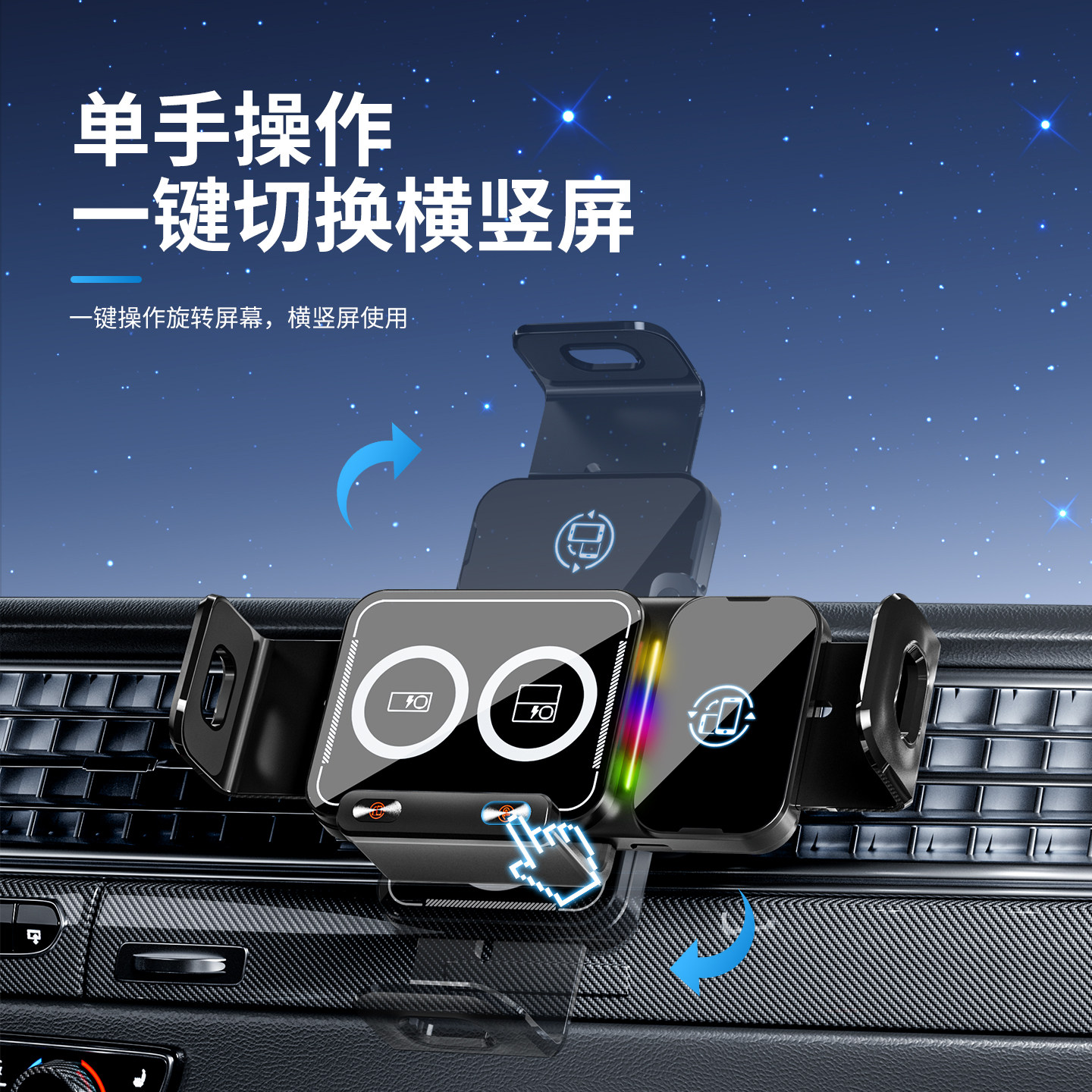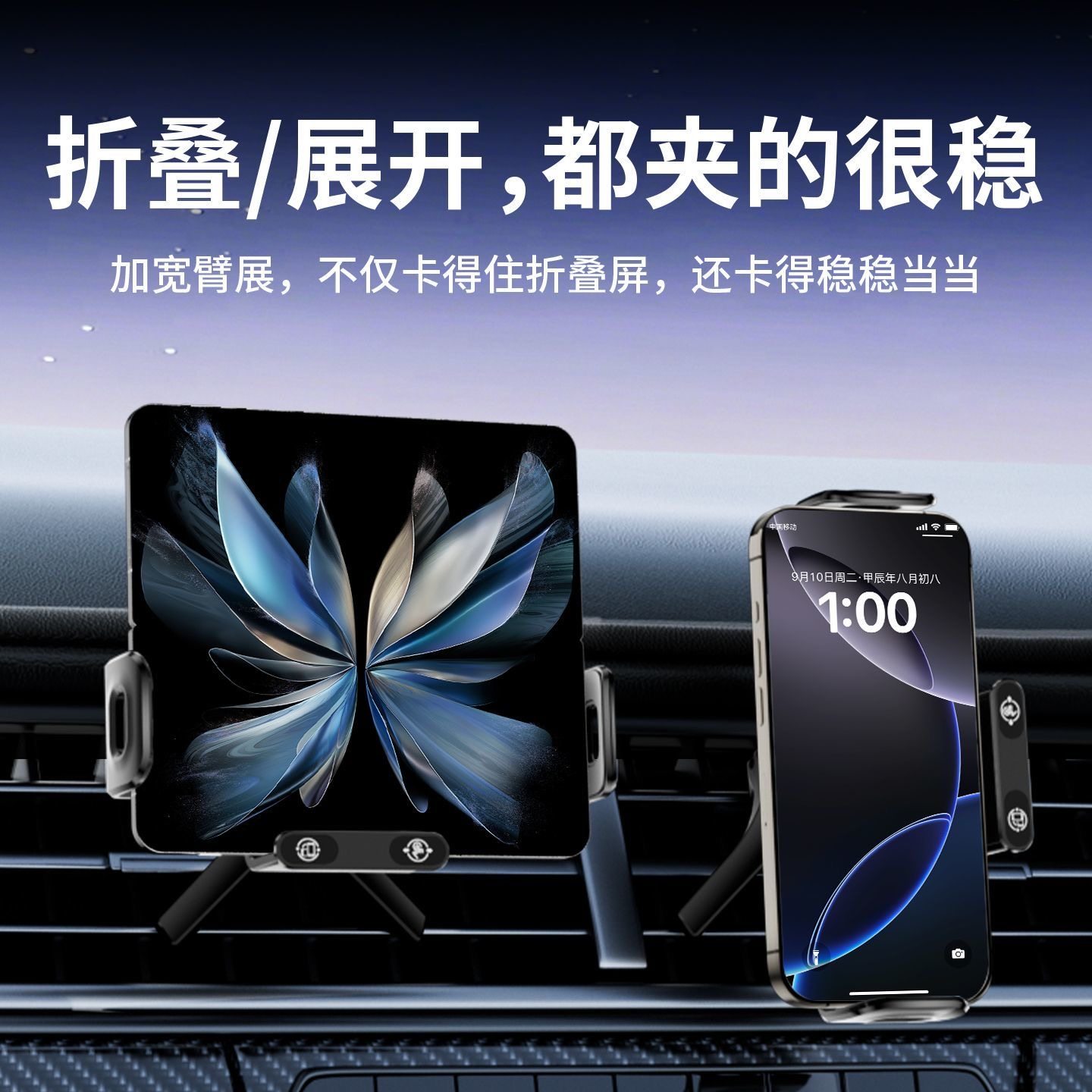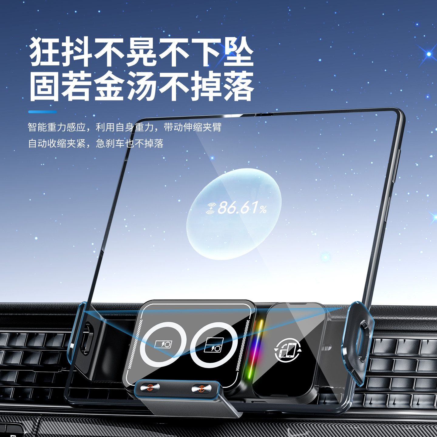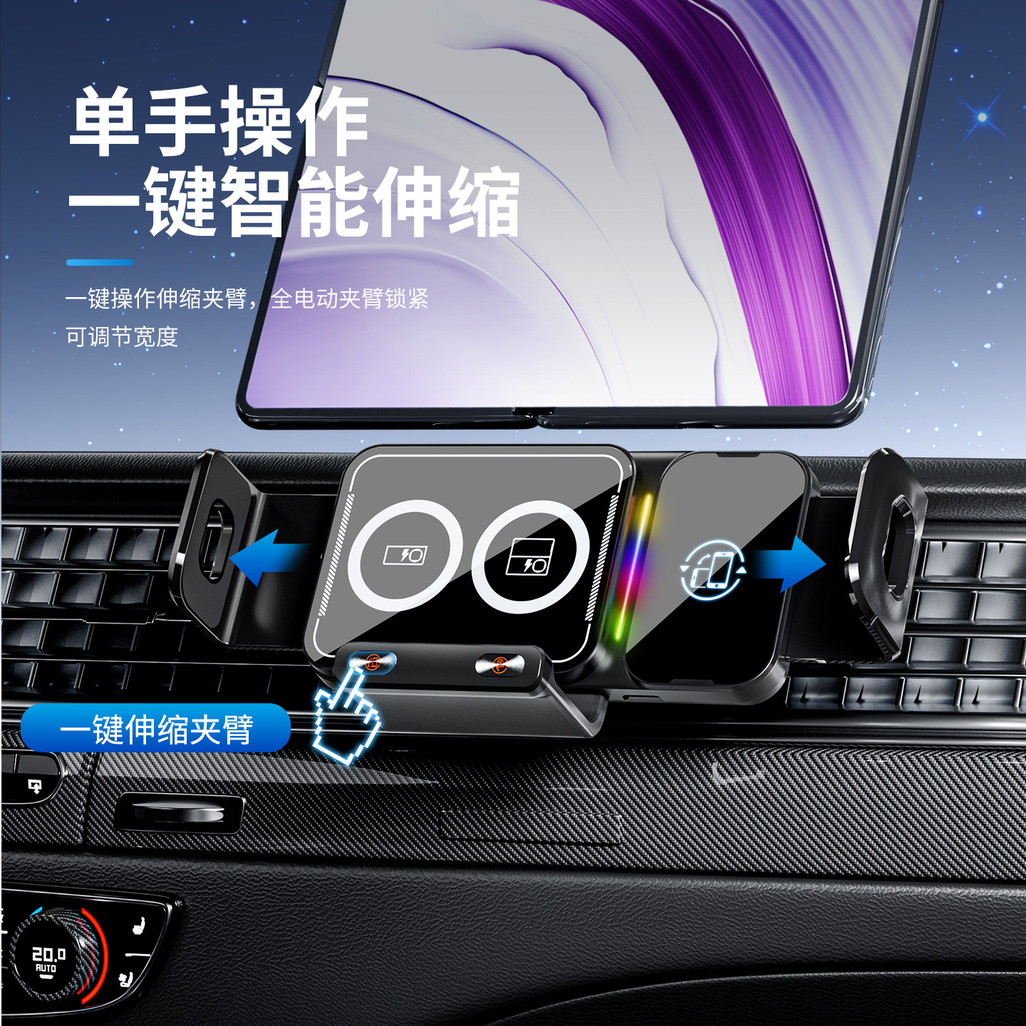 智能旋转电动夹紧车载手机支架无线快充汽车出风口导航折叠屏通用
