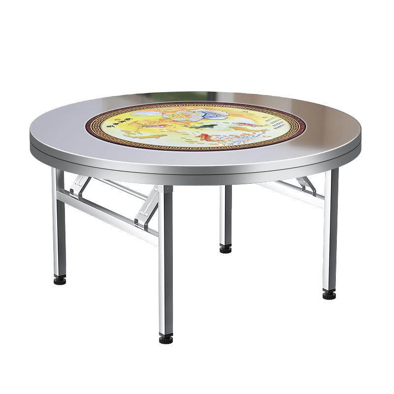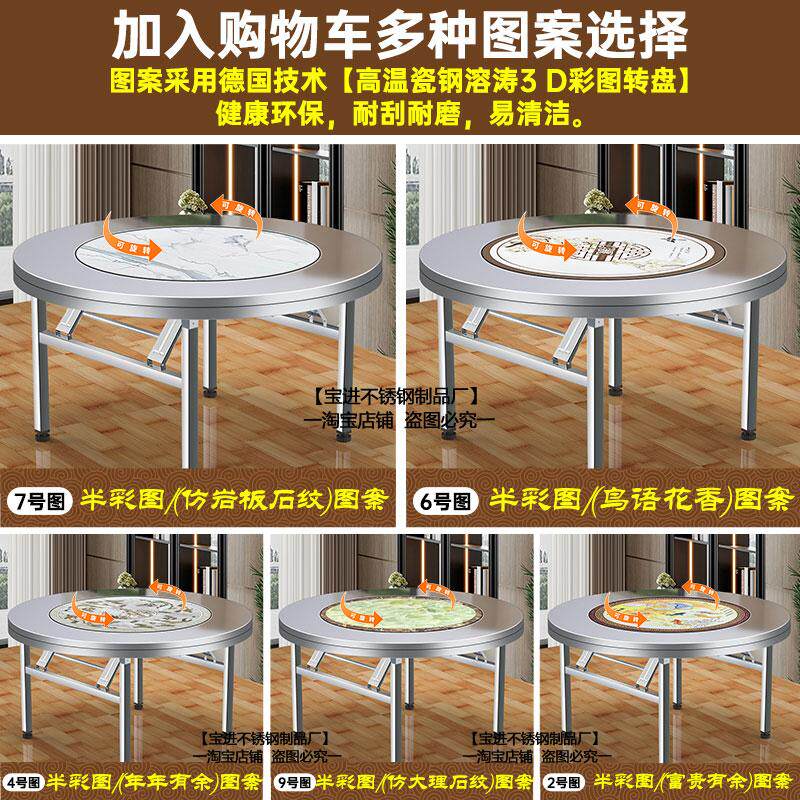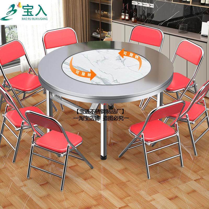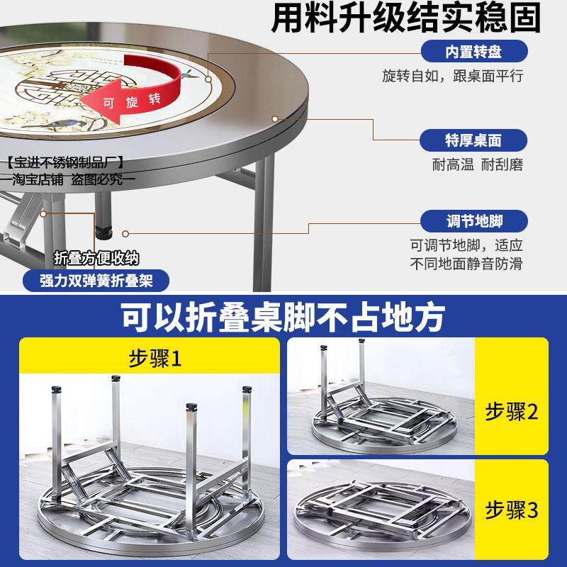 推荐理由:不锈钢内置转盘圆桌不锈钢折叠桌家用商用大桌加厚可折叠桌面餐桌