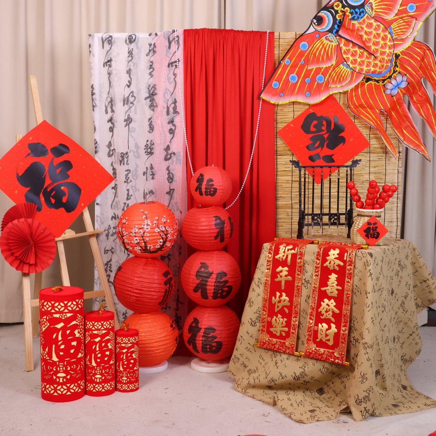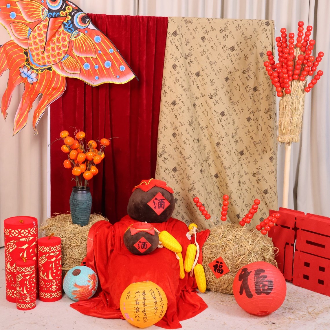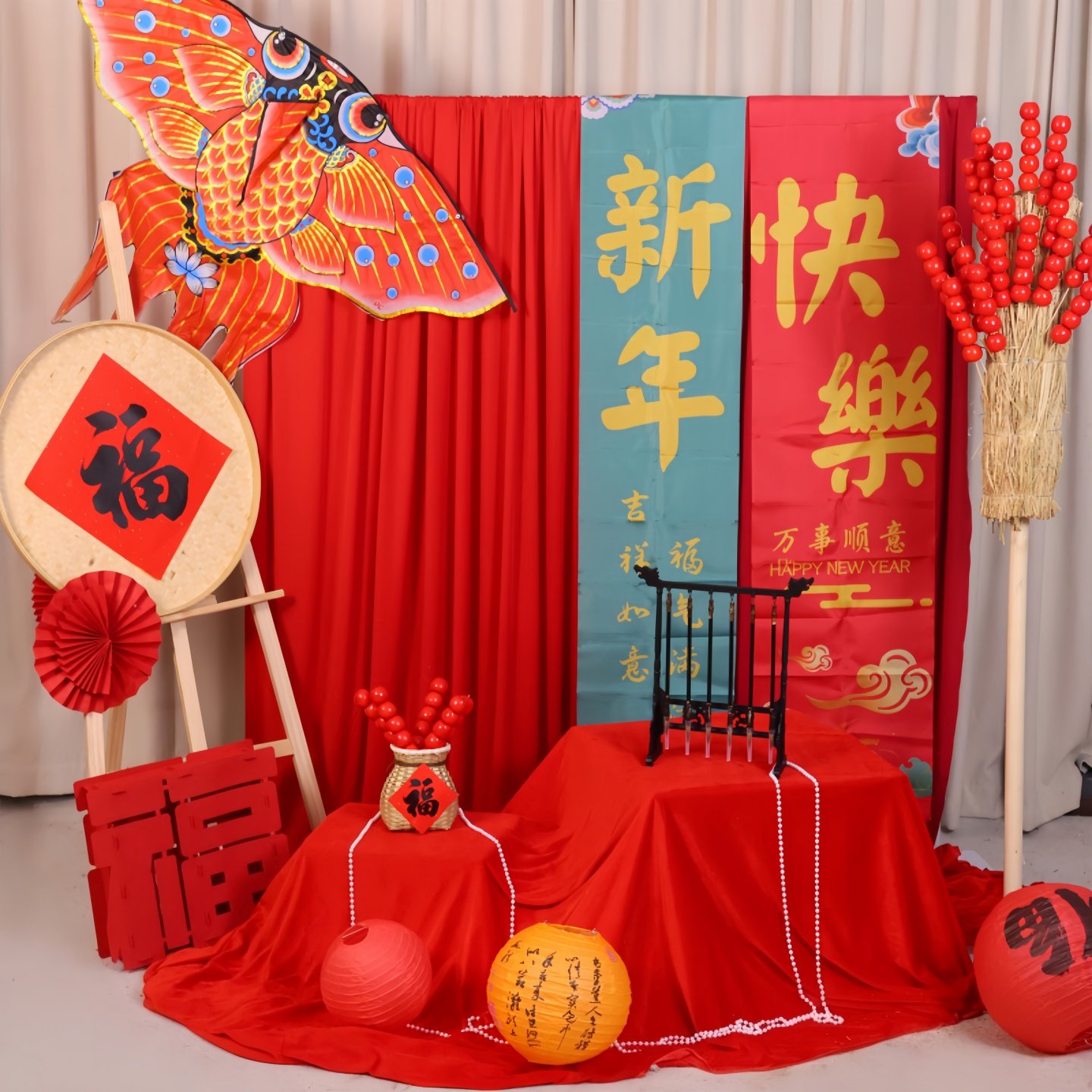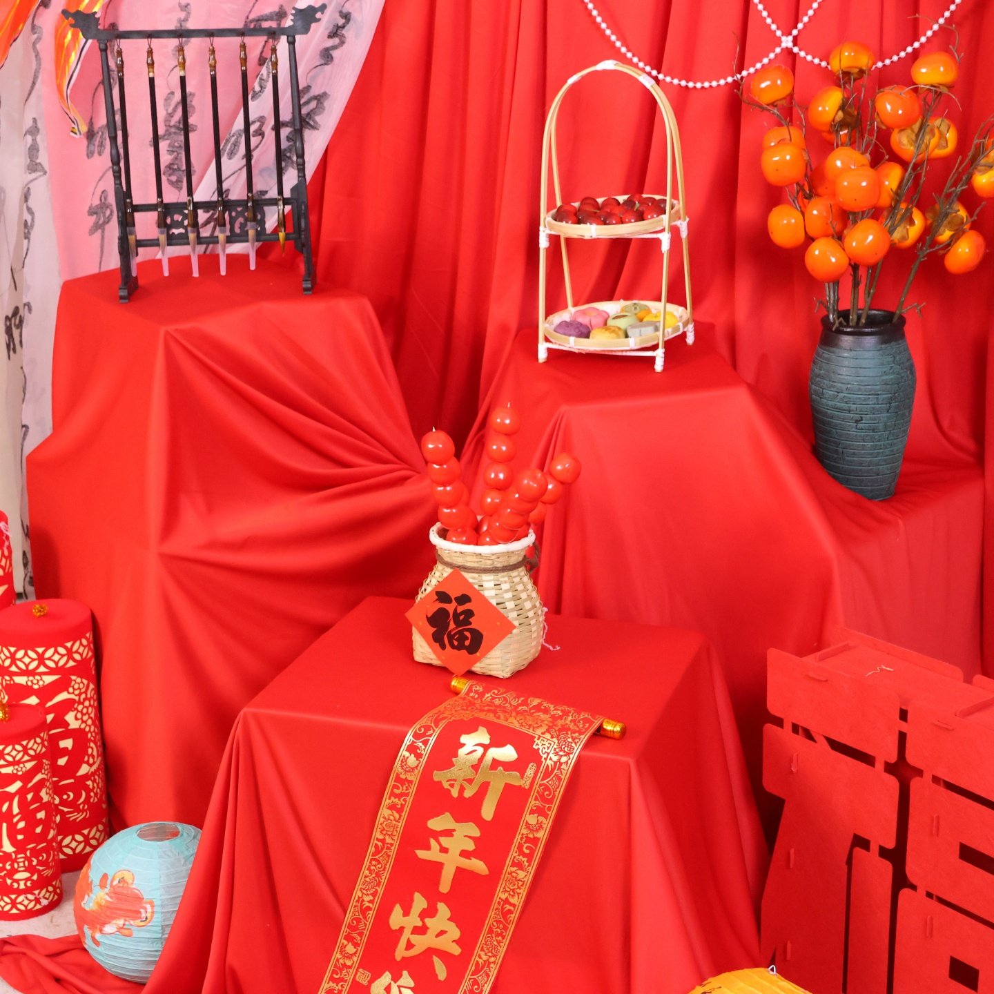 新年元旦红色布幔纱幔国风氛围场景布置装饰背景布幼儿园环创挂布