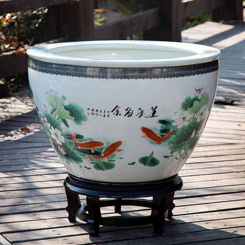 景德镇睡莲家用金鱼缸缸庭院花盆养碗荷陶水缸瓷缸青花手工大缸莲