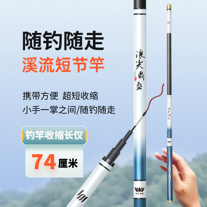 推荐理由:浪尖鼎盛鱼竿短节手竿溪流竿超轻碳素钓鱼竿小物竿轻量鲫鱼短节竿