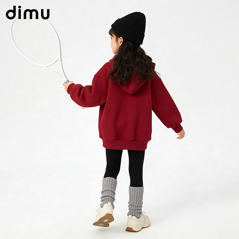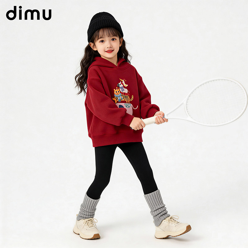 笛牧童装女童红色加绒卫衣2025新款秋冬季儿童加厚新年服女孩冬装