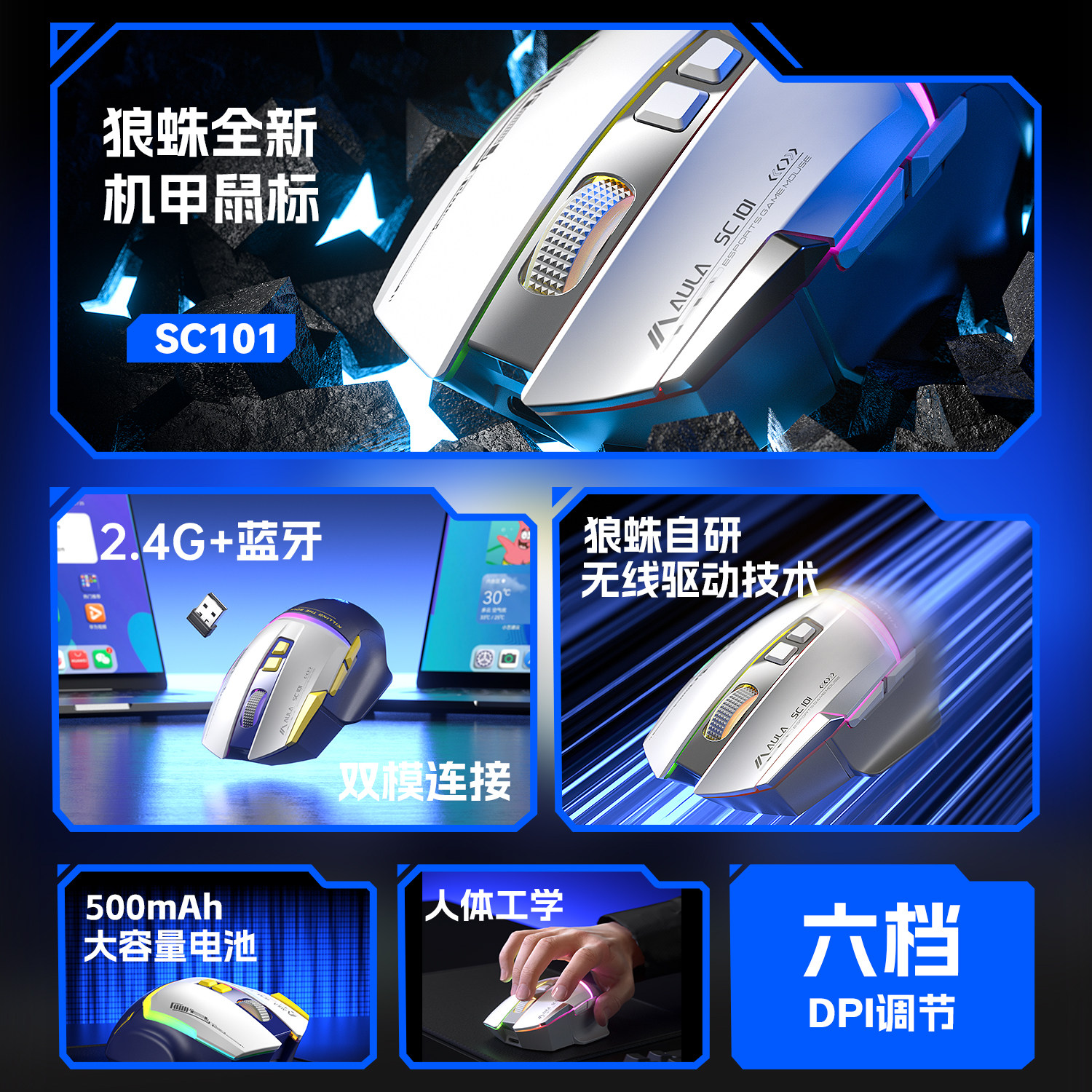 狼蛛SC101无线鼠标电竞游戏办公蓝牙有线充电台式电脑笔记本外设