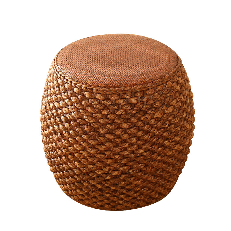 藤中式实木化妆矮草鼓凳家用客厅沙发茶室坐凳圆坐墩古筝琴备用凳