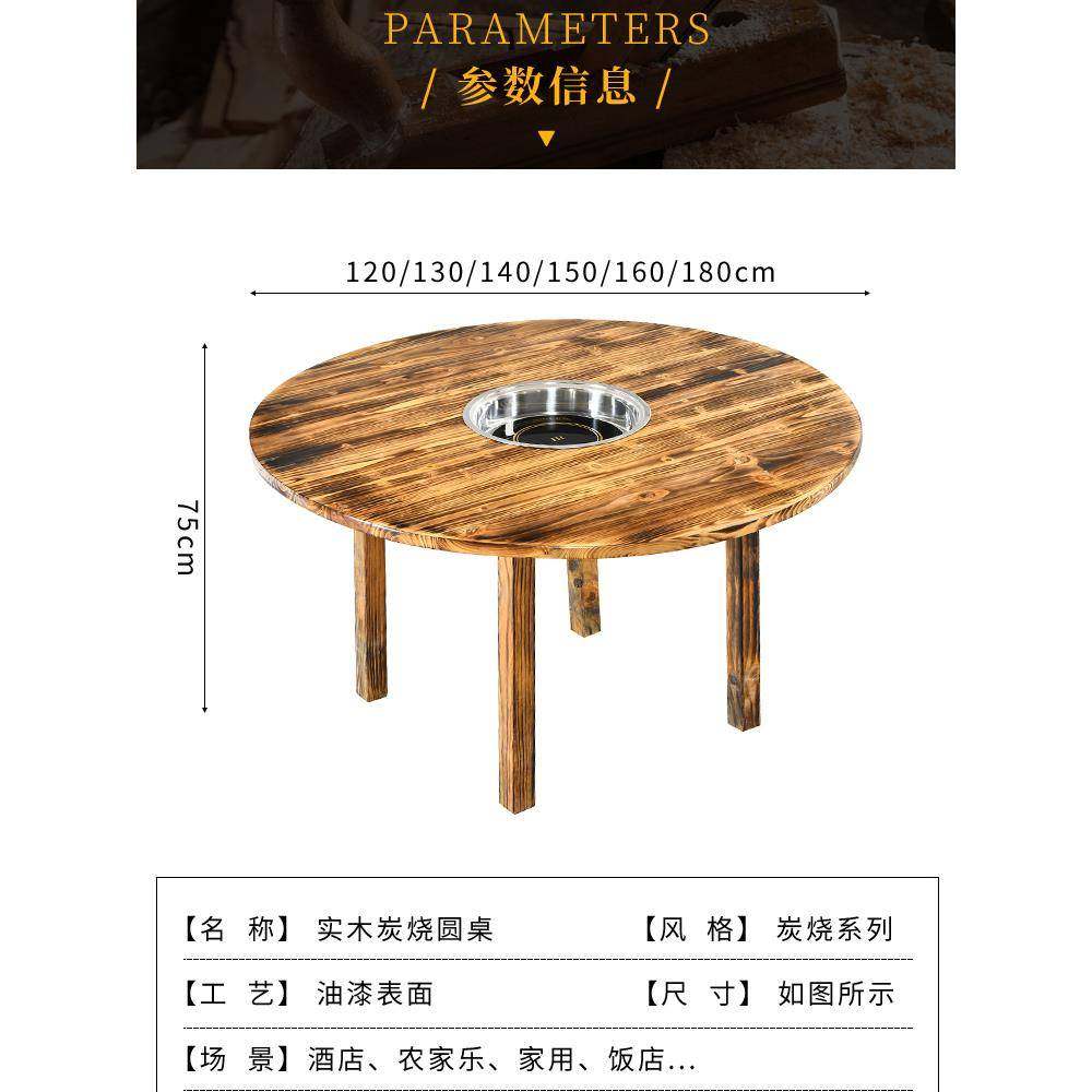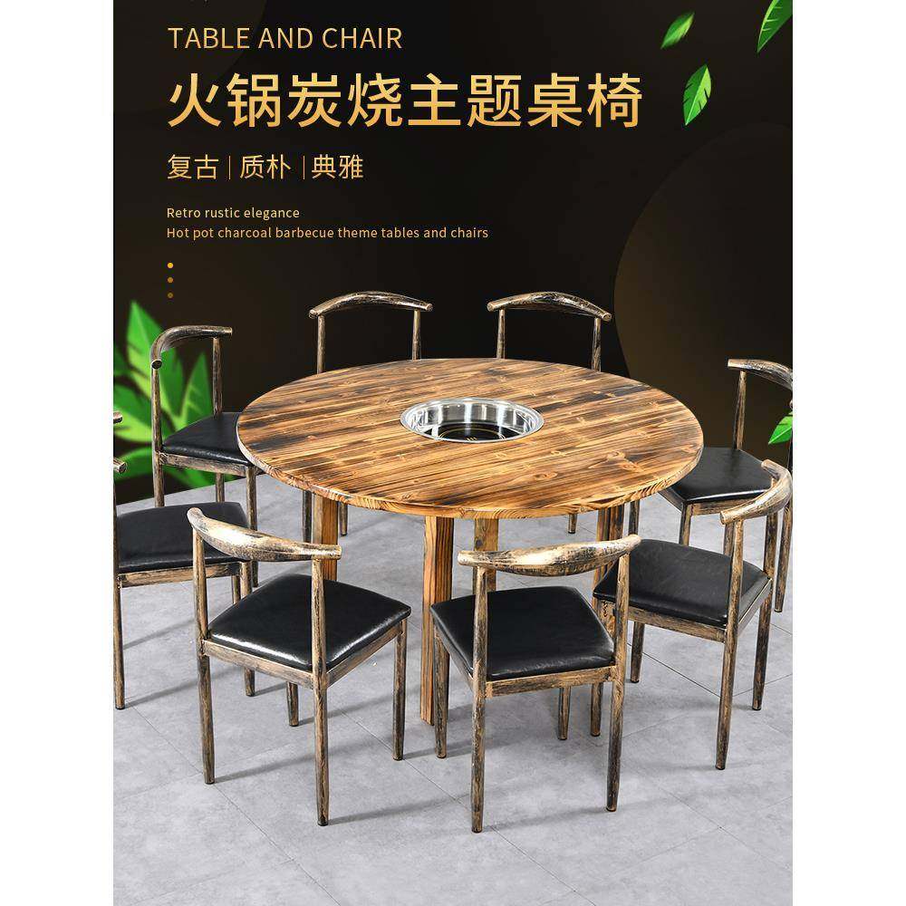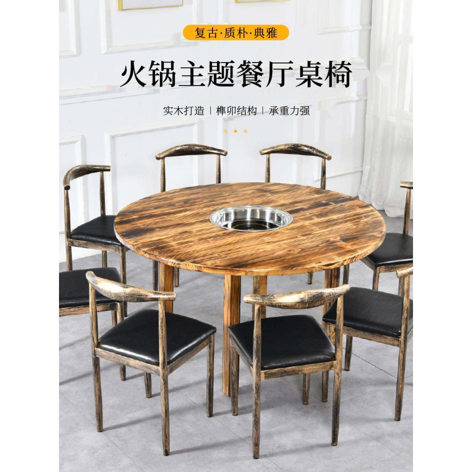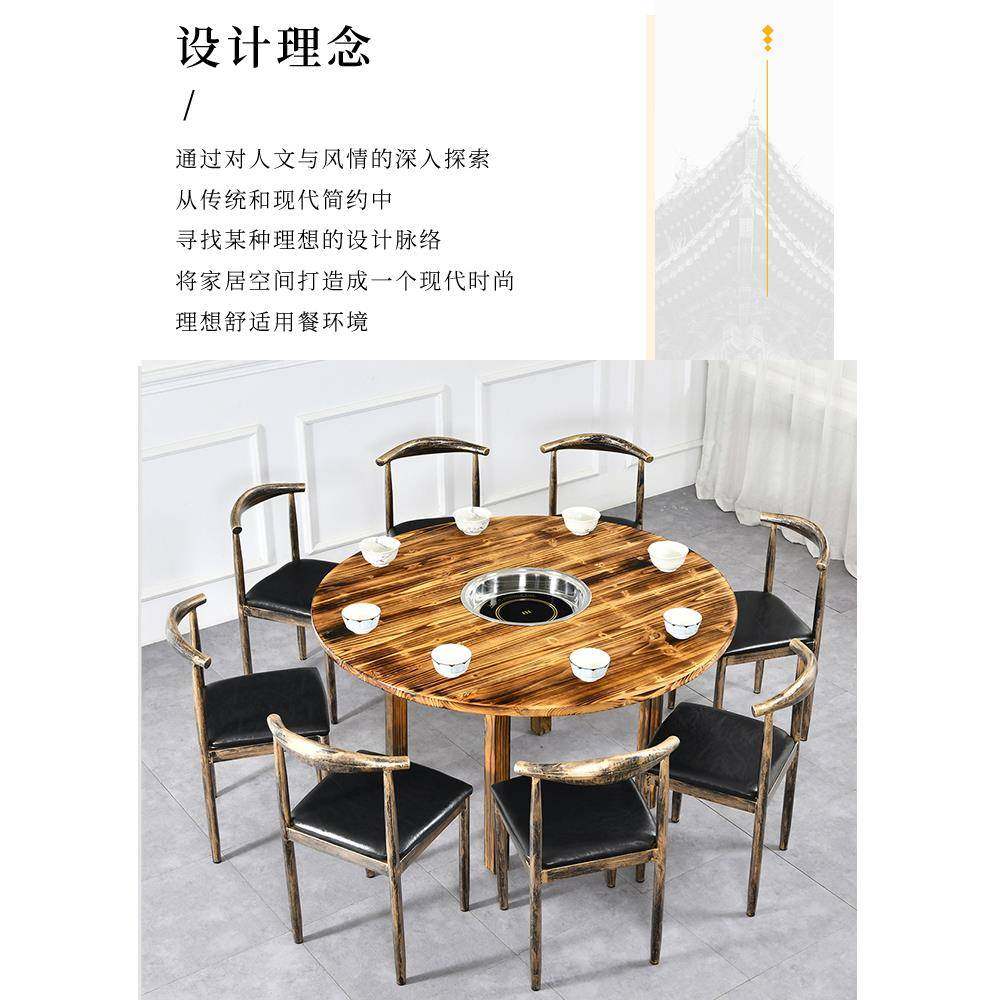 推荐理由:餐饮火锅桌电磁炉一体商用碳化实木圆桌子大排档农家乐餐桌椅组合
