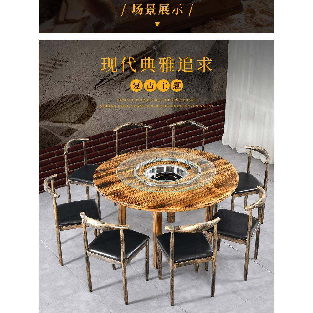 餐饮火锅桌电磁炉一体商用碳化实木圆桌子大排档农家乐餐桌椅组合