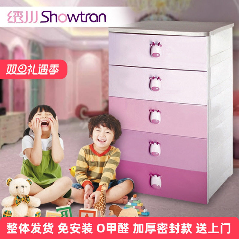 绣川密封儿童收纳柜免安装宝宝卡通衣柜玩具整理抽屉五斗柜储物柜