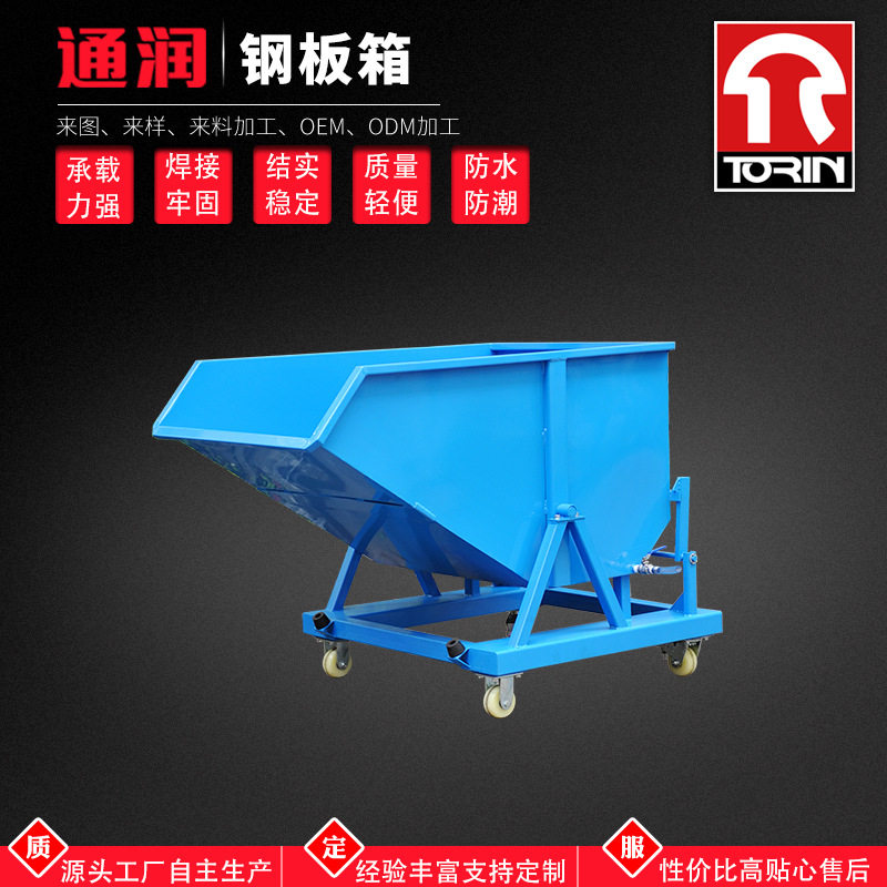 常熟通润供应翻转式铁屑车手推式车间重型倒料铁屑车铁铝渣接屑箱