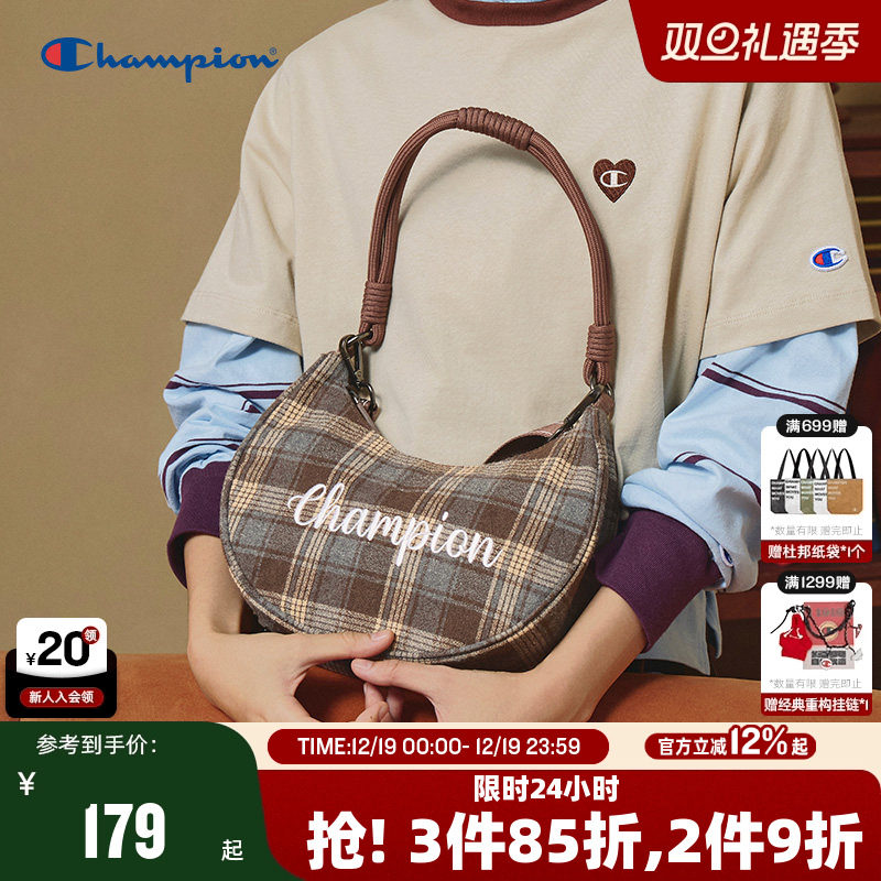Champion冠军单肩包2025秋冬新款月牙包女格纹斜挎包男通勤腋下包