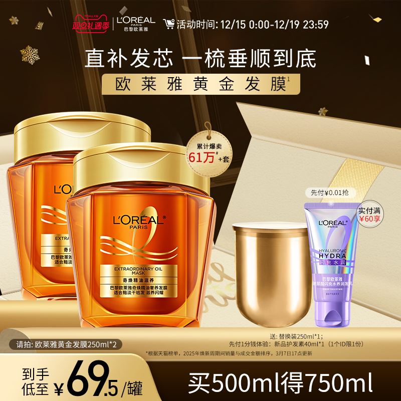 欧莱雅黄金发膜精油柔顺顺滑改善毛躁修护发丝烫染受损非护发素