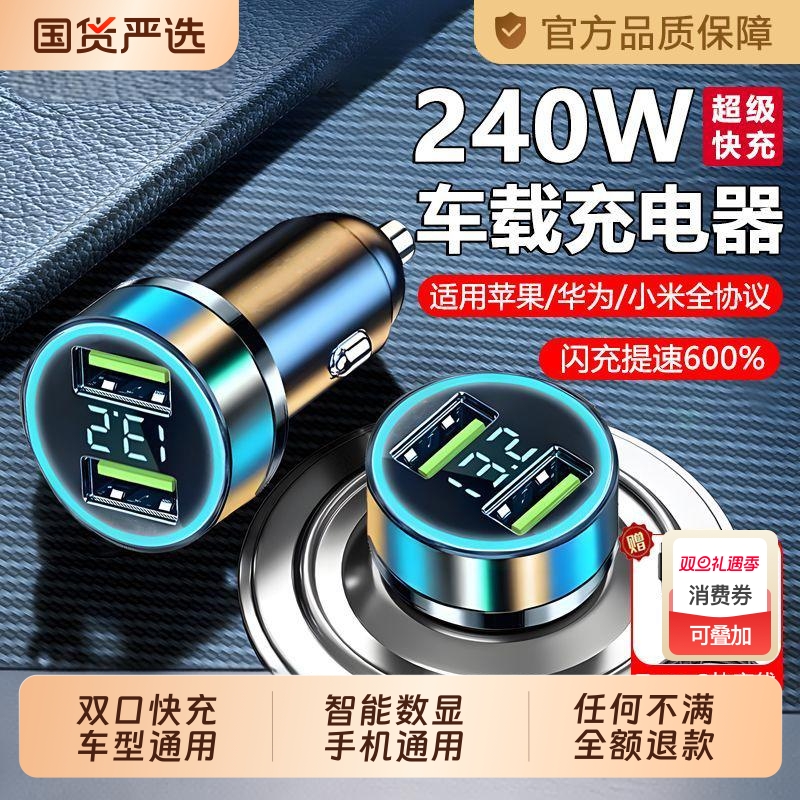 车载充电器超级快充2025新款120w点烟器转换插座适用华为苹果小米