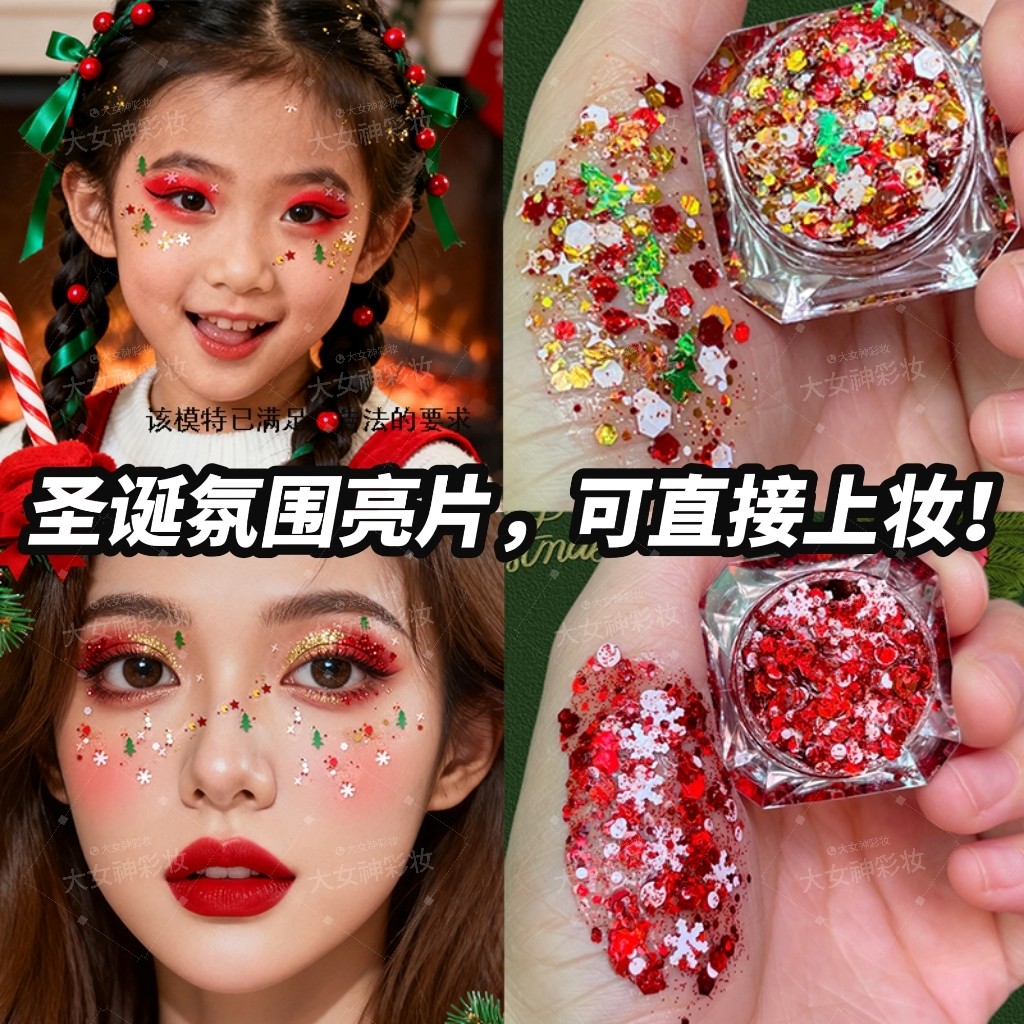 圣诞节妆圣诞树白色雪花红色啫喱亮片亮晶晶圣诞节日氛围眼影亮片