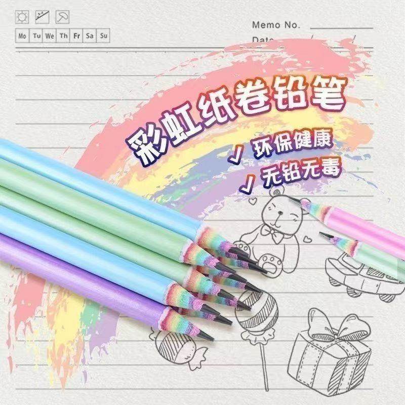 HB铅笔小学生无铅毒小学生幼儿园高颜值儿童写字彩虹纸卷铅笔