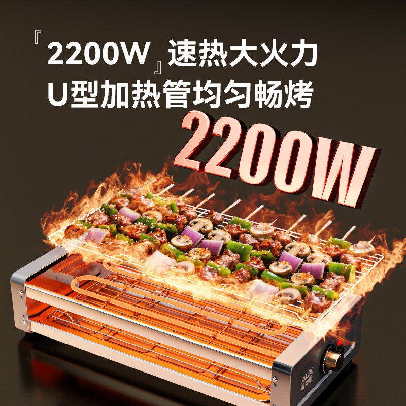 奥克斯新款无烟电烧烤炉家用室内烤串机多功能电烤盘电烤锅烹饪机