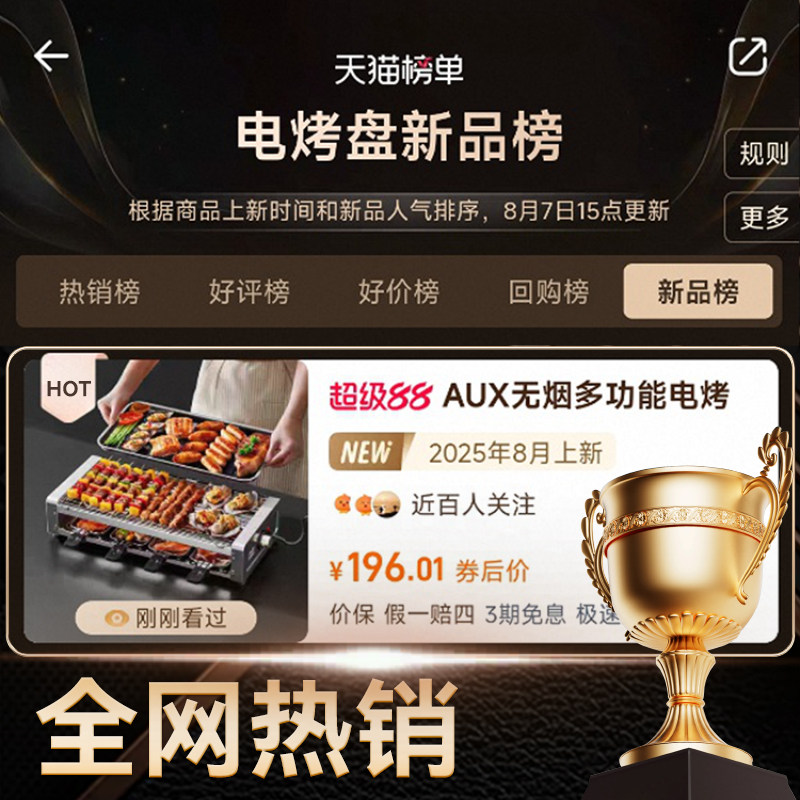 推荐理由:奥克斯新款无烟电烧烤炉家用室内烤串机多功能电烤盘电烤锅烹饪机