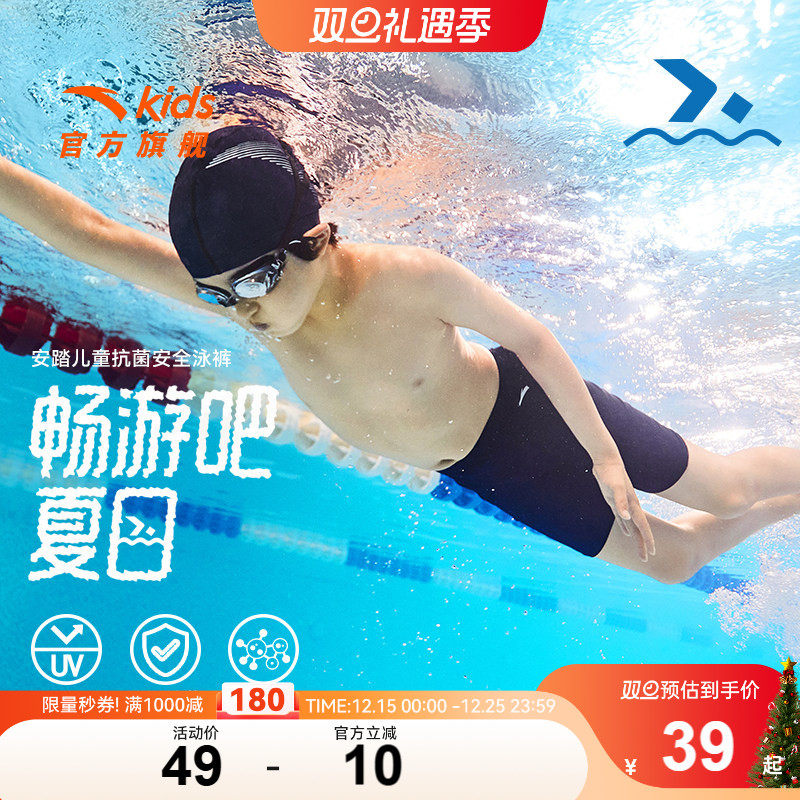 安踏儿童装男童泳裤夏2025款防晒抗氟宝宝泳裤速干游泳裤男孩泳装