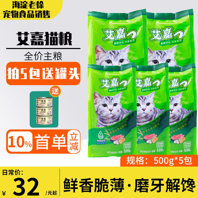 艾嘉猫粮2.5kg海洋鱼味 成幼猫流浪猫 英短美短通用猫主粮5斤