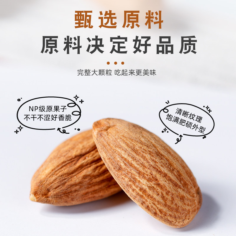 芝参堂原味巴旦木仁500g生大杏仁熟扁桃仁盐焗坚果零食巴坦木烘焙