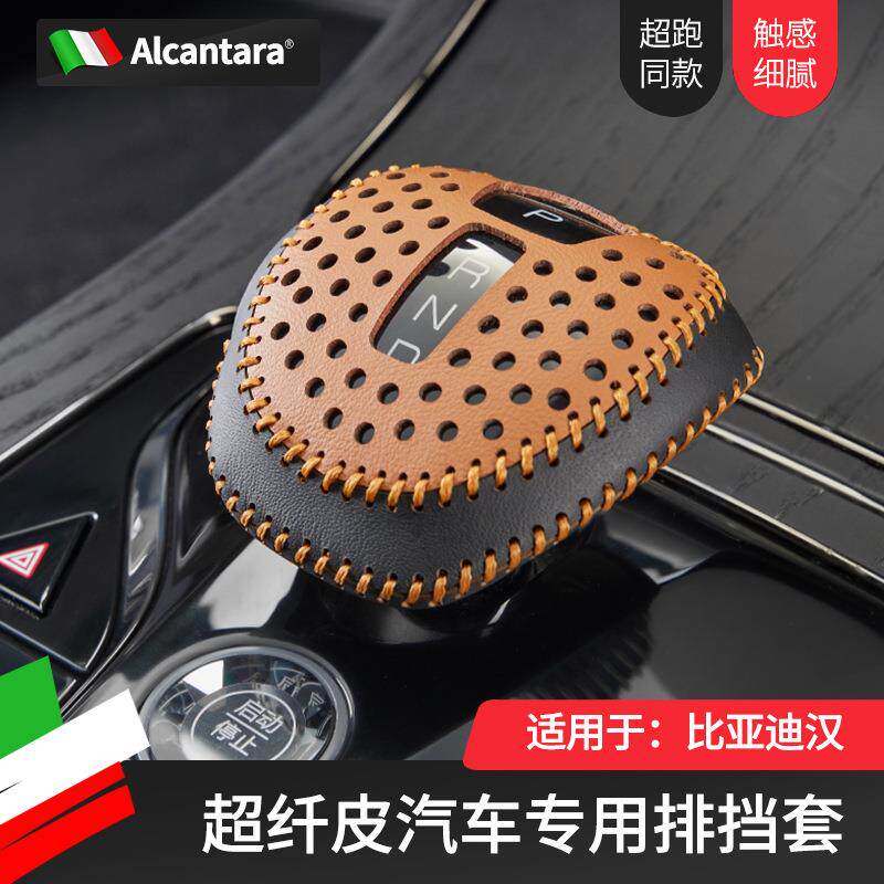 适用于比亚迪汉超纤皮排挡头套车内饰专用个性改装档把档杆保护套