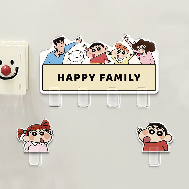 蜡笔小新入户门后挂钩免打孔挂衣架玄关钥匙收纳挂钩强力承重粘钩