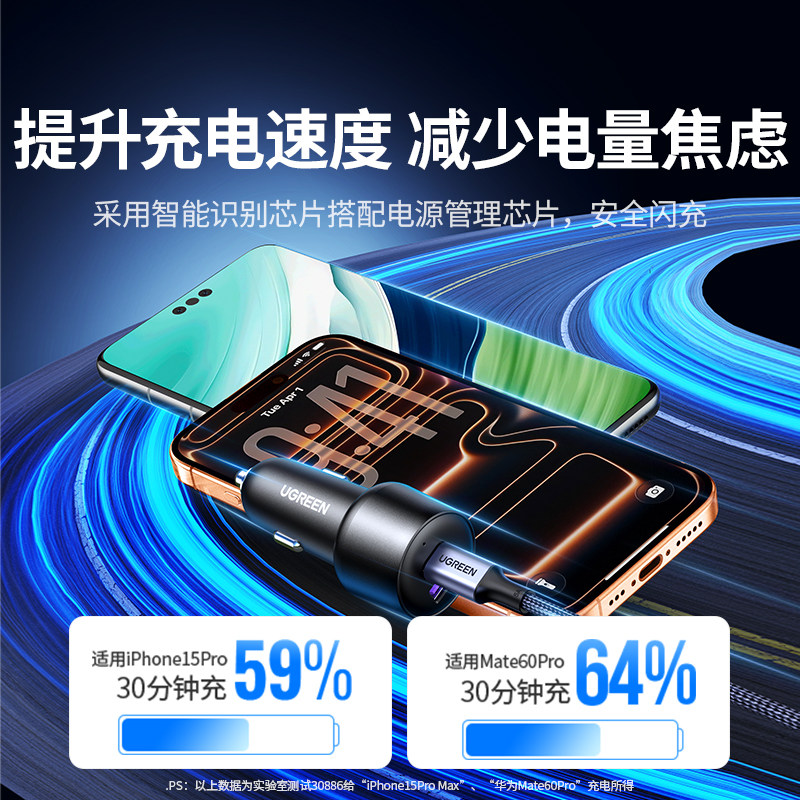 推荐理由:适用苹果20W+安卓22.5W 可接车充/记录仪