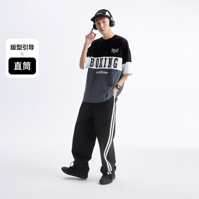 【赛车系列】太平鸟男装 竖条纹撞色休闲裤男直筒长裤B2GBD2424
