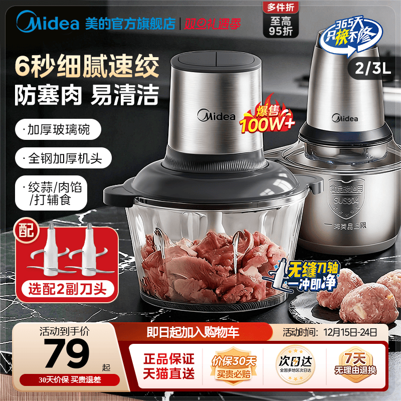 美的绞肉机家用全自动小型多功能搅拌打碎肉绞馅料理机新款官方正