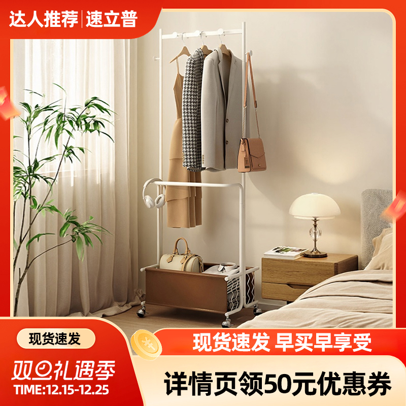 速立普衣帽架卧室落地奶油风家用客厅衣服收纳架可移动铁艺挂衣架