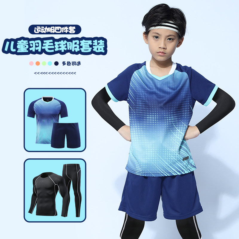 儿童排球服四件套紧身服羽毛球训练服跳绳学生乒乓网球衣秋冬定制