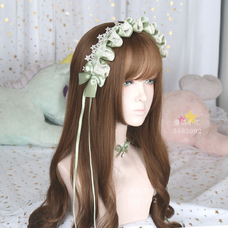 推荐理由:若草色洛丽塔头饰lolita发带抹茶色蕾丝小物Lolita边夹kc发夹发箍