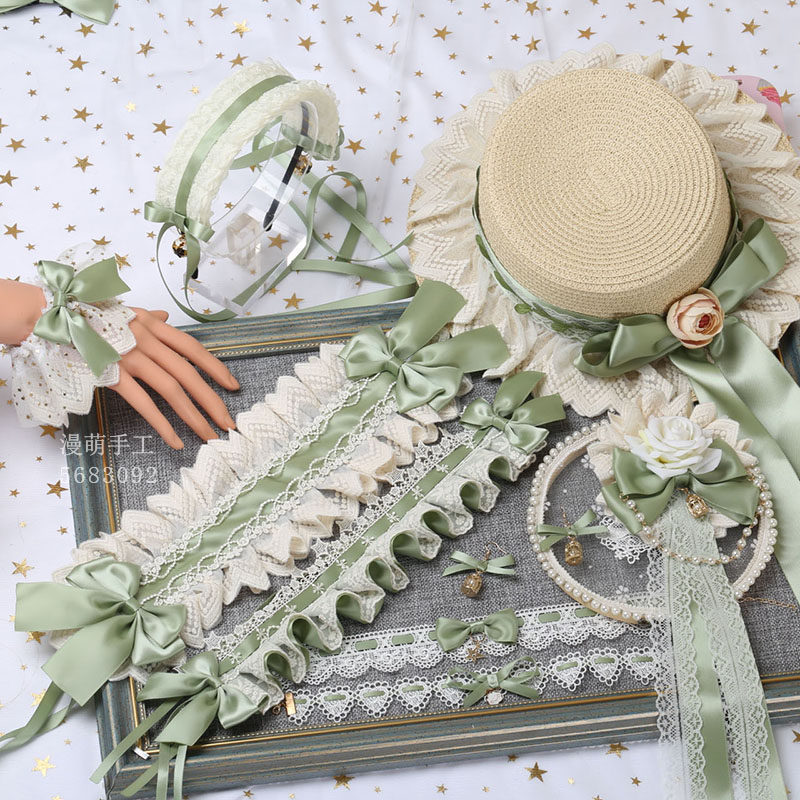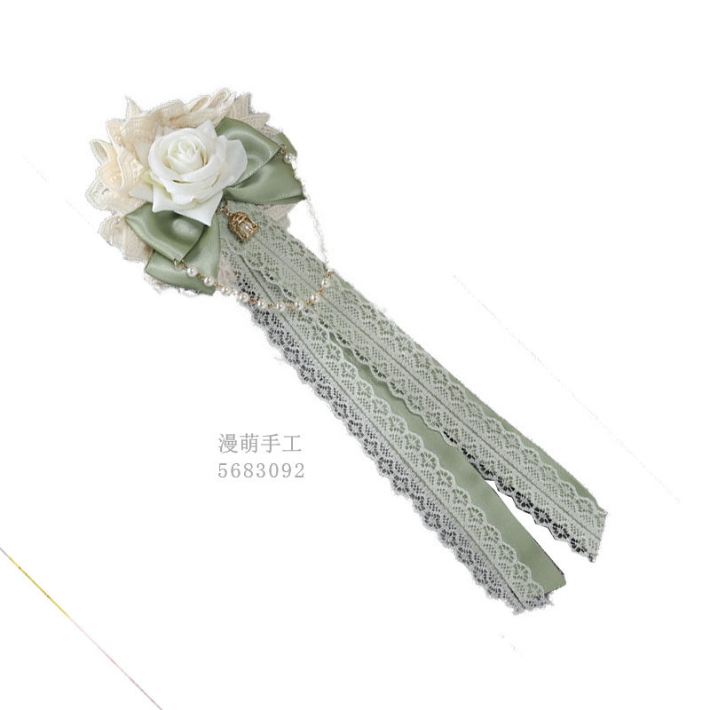 若草色洛丽塔头饰lolita发带抹茶色蕾丝小物Lolita边夹kc发夹发箍