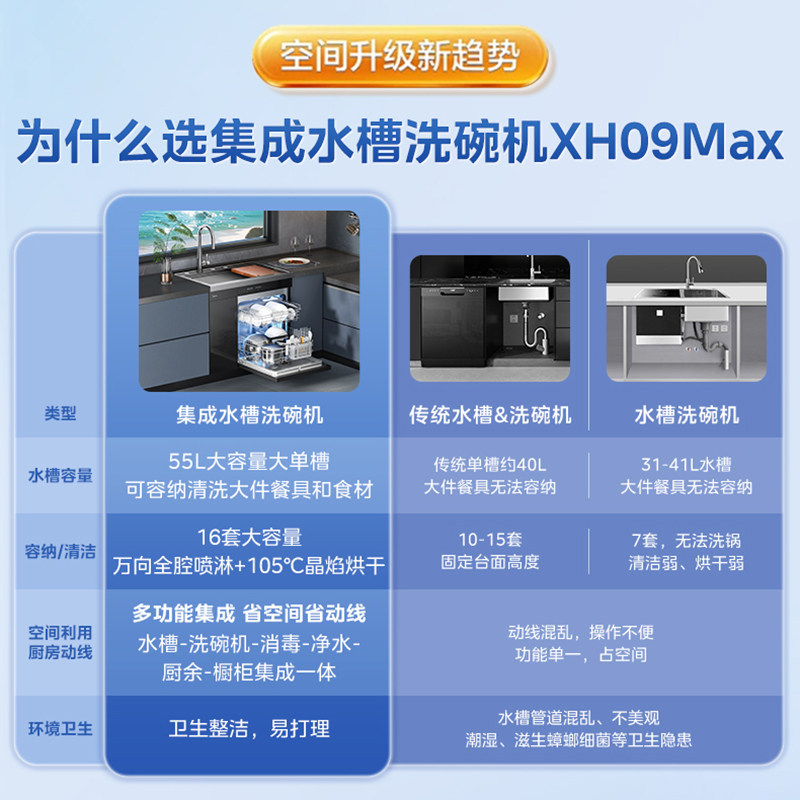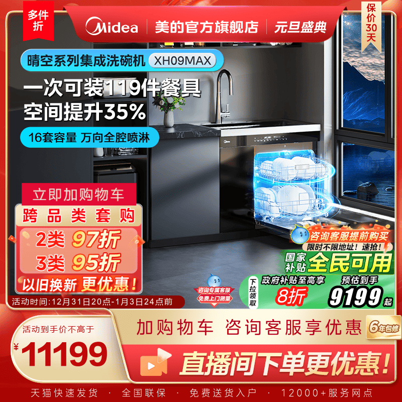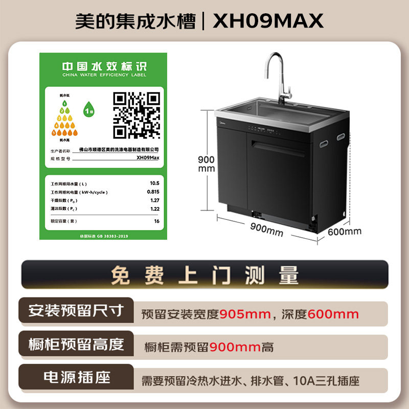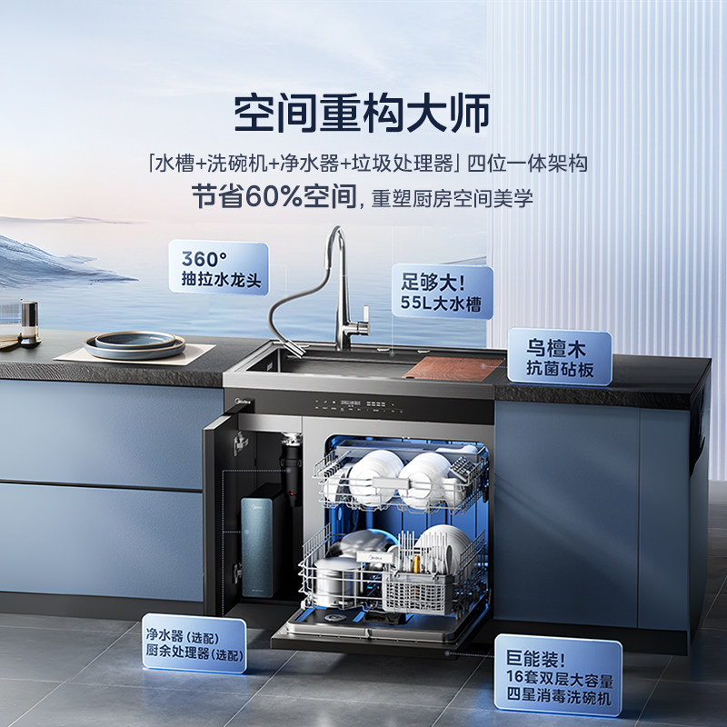 国家补贴]美的晴空集成洗碗机水槽一体16套容量XH09Max官方旗舰店