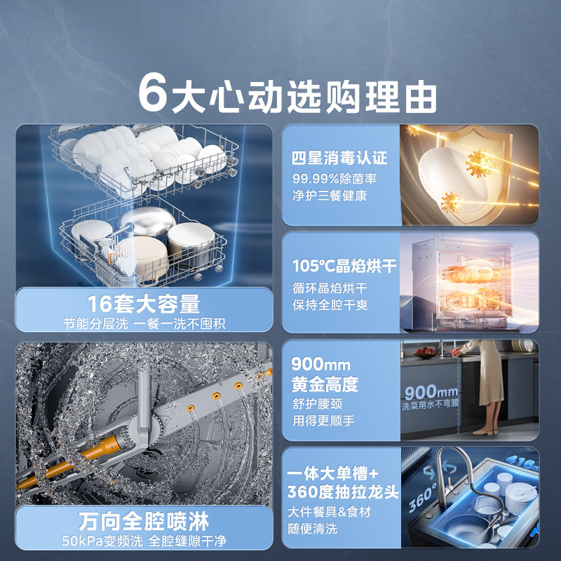 推荐理由:16套容量 四星消毒 一级水效 55L宽大水槽