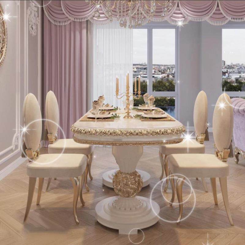 直销法式宫廷实木餐桌厅椅美式141轻奢椭圆花餐桌形现简约客代厅