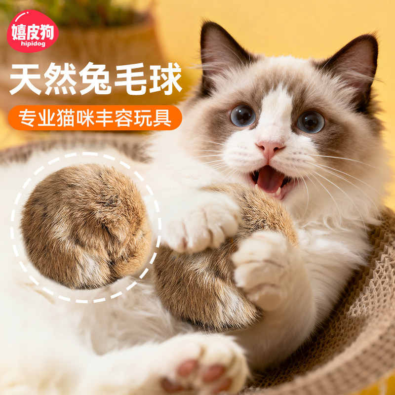 天然兔毛球猫咪玩具自嗨解闷猫薄荷球小猫丰容解压逗猫棒消耗体力