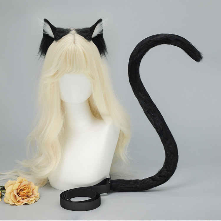 万圣节猫耳朵发箍手作毛绒cos猫耳道具漫展头饰猫耳猫尾巴套装