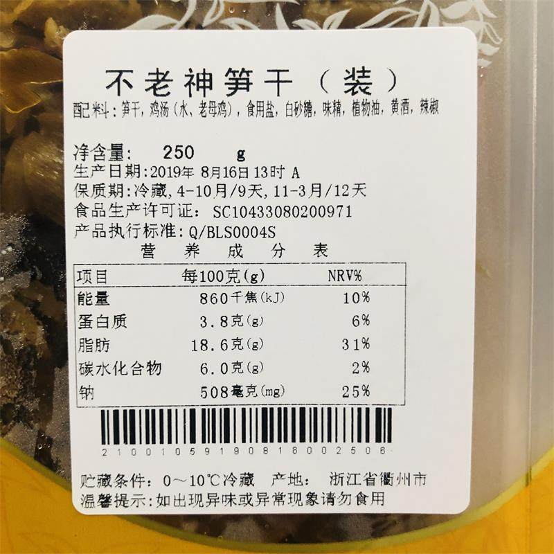 不老神锁鲜香辣笋干卤味小竹笋特色即食笋尖素食零食气调盒装250g