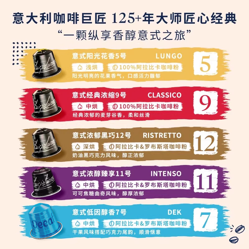 LAVAZZA拉瓦萨胶囊黑咖啡粉原装进口10粒适配Nespresso胶囊机