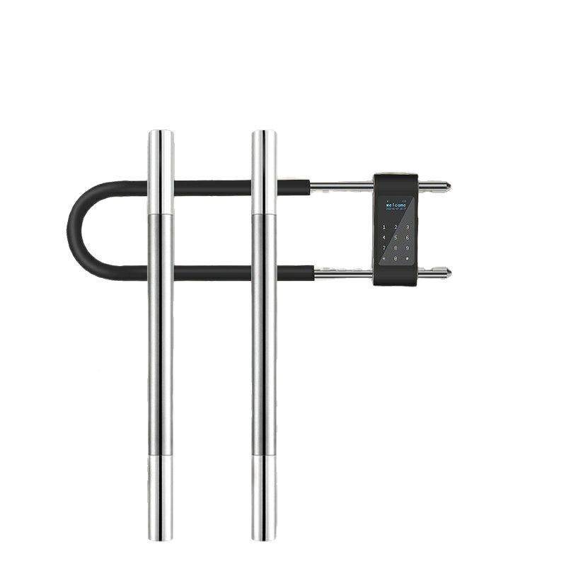 密码u型锁锁璃玻门指纹双门商铺电店面大门U形插锁子锁智能B11门