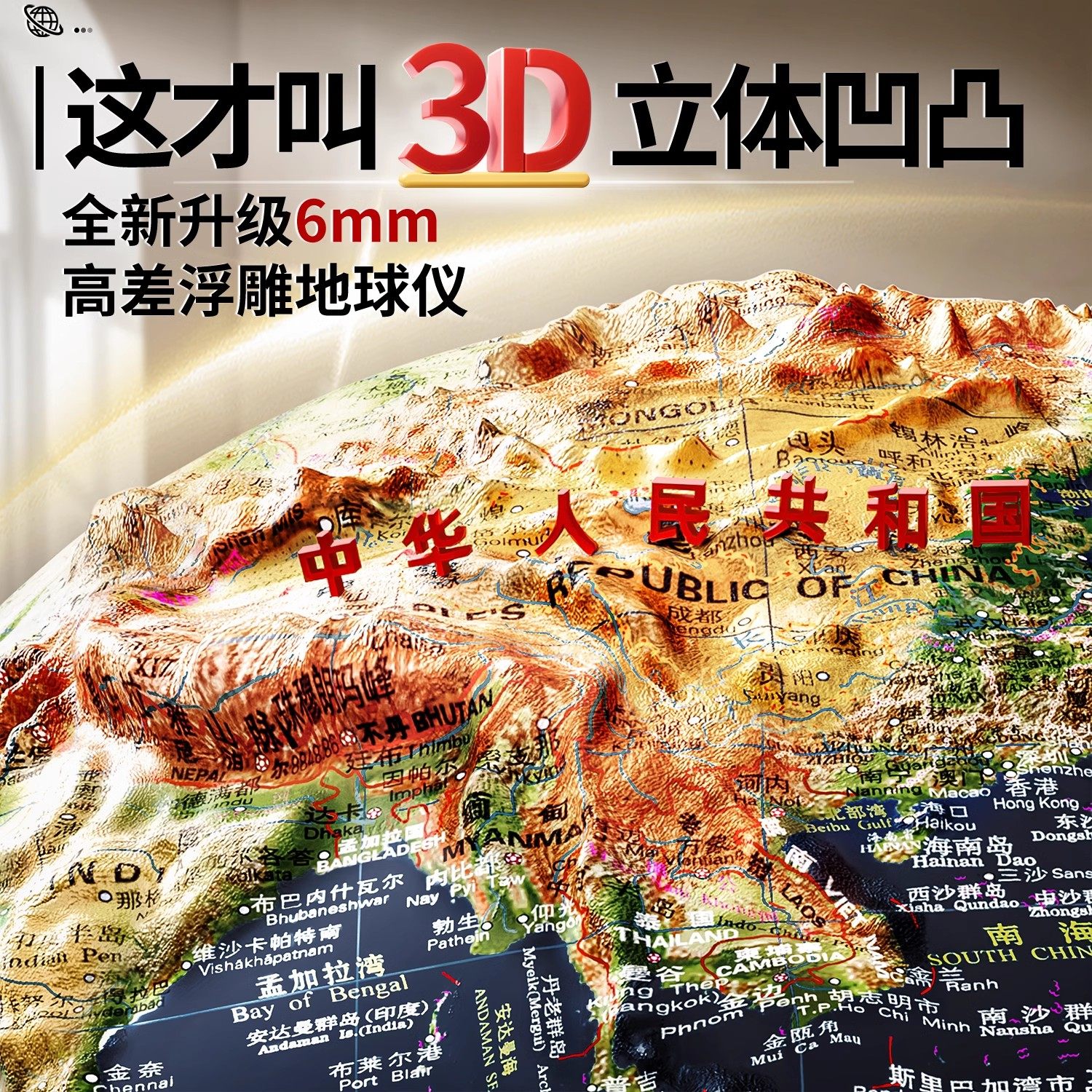 推荐理由:浮雕地球仪3d立体凹凸悬浮正版学生用初中小学生儿童启蒙ar官方旗舰店男孩生日礼物2025年新版客厅摆件高级感