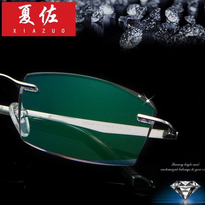 钻石切边无框眼镜男近视超轻无螺丝纯钛商务变色防蓝光眼睛大脸
