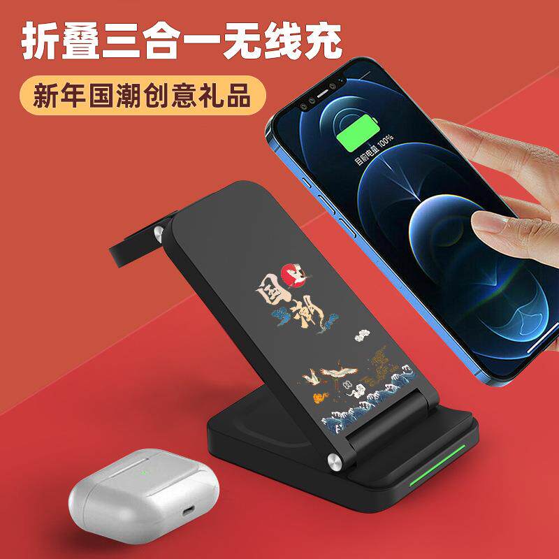 直销新款年会礼品折叠三合一无线充 龙年创意无线充公司员工商务