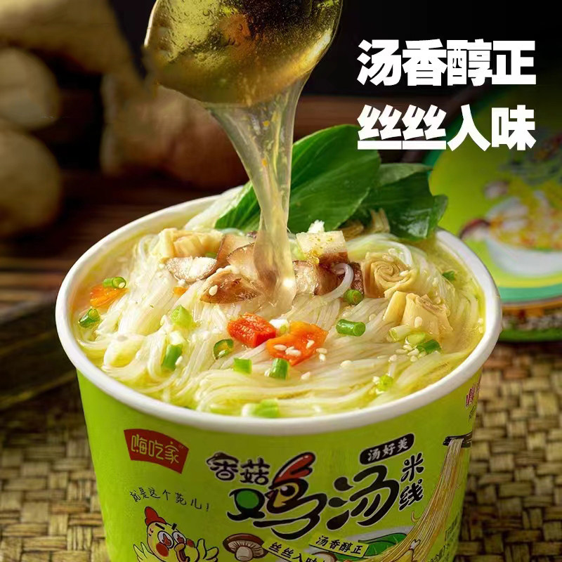 香菇鸡汤米线嗨吃家6桶不辣方便米线冲泡宿舍懒人夜宵美味速食