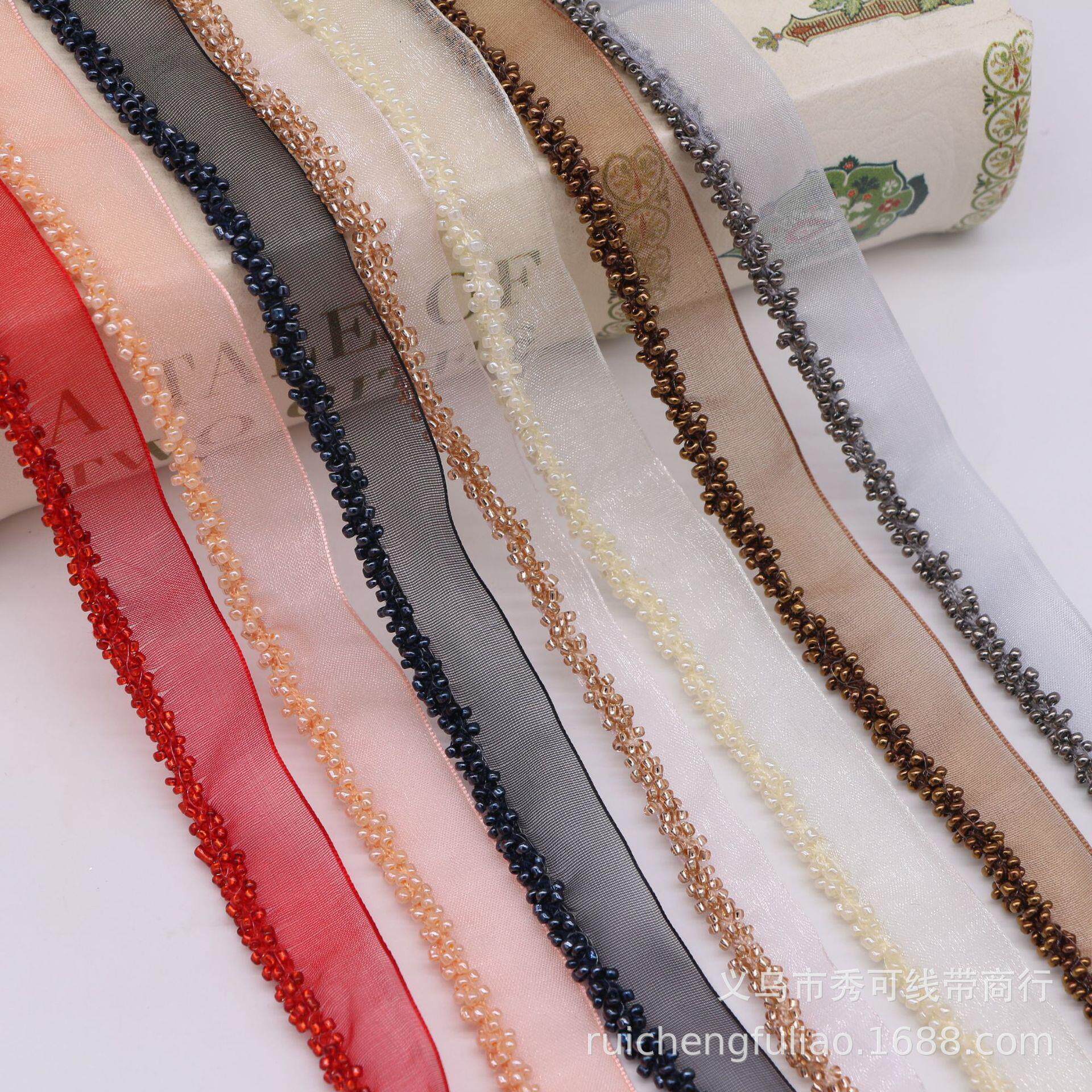 1.5cm宽跨境现货网纱米珠花边机织珠绳手工diy服装车边辅料