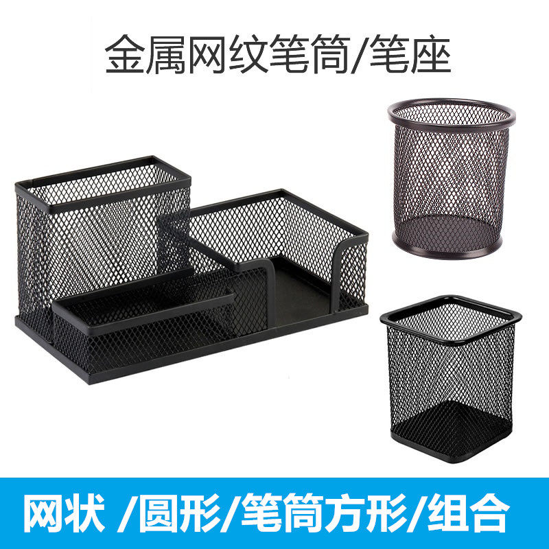 上汇9172 大笔筒 大号笔筒 铁丝网黑色笔筒 小号笔筒 组合笔筒 圆形笔筒 方形笔筒 金属笔筒