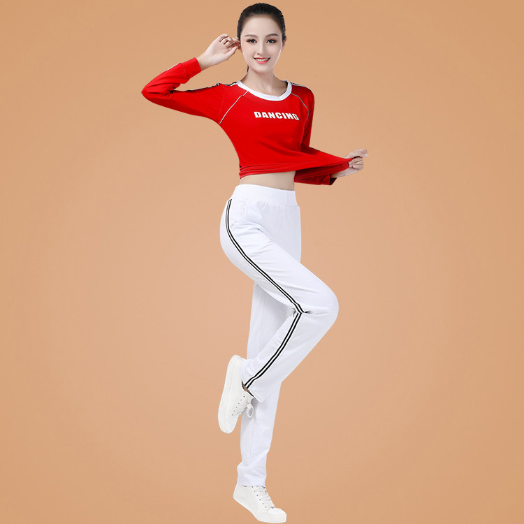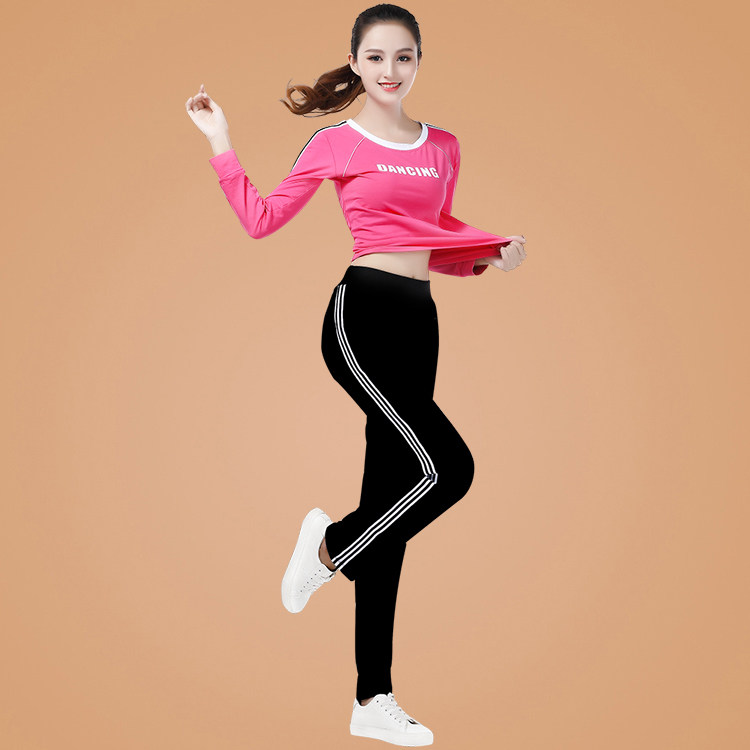 推荐理由:运动风广场舞套装女春秋新款长袖修身上衣团体演出服多色舞蹈服装