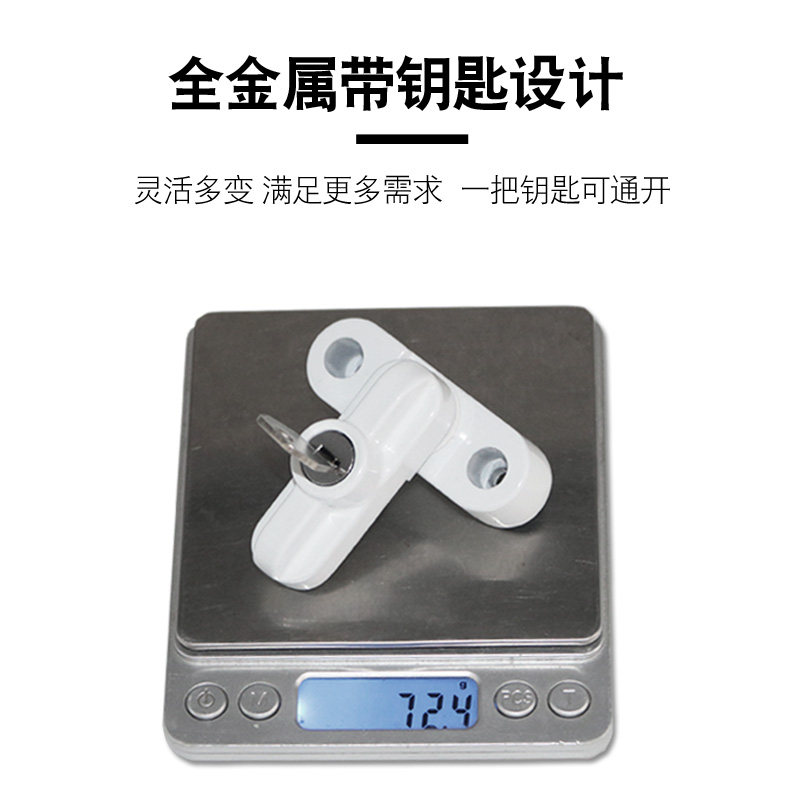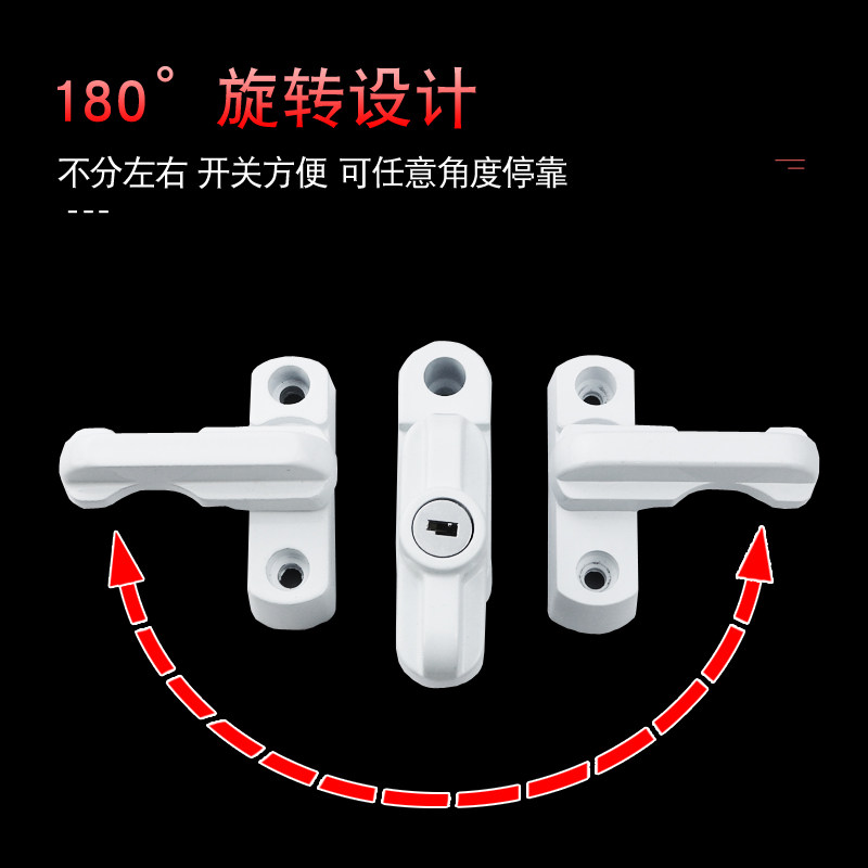 塑钢平开窗锁免打孔执手把手带钥匙T型锁窗户搭扣防盗儿童安全锁